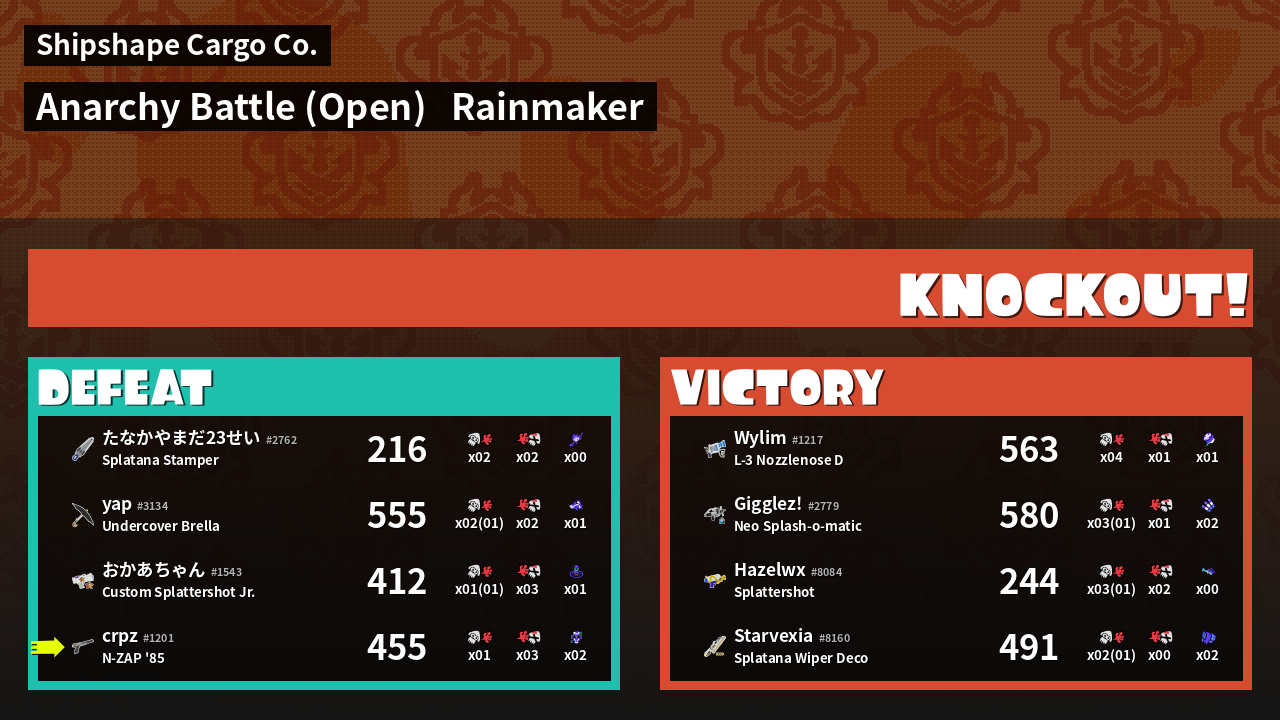 | Mode | Rainmaker - Anarchy Battle (Open) | ||