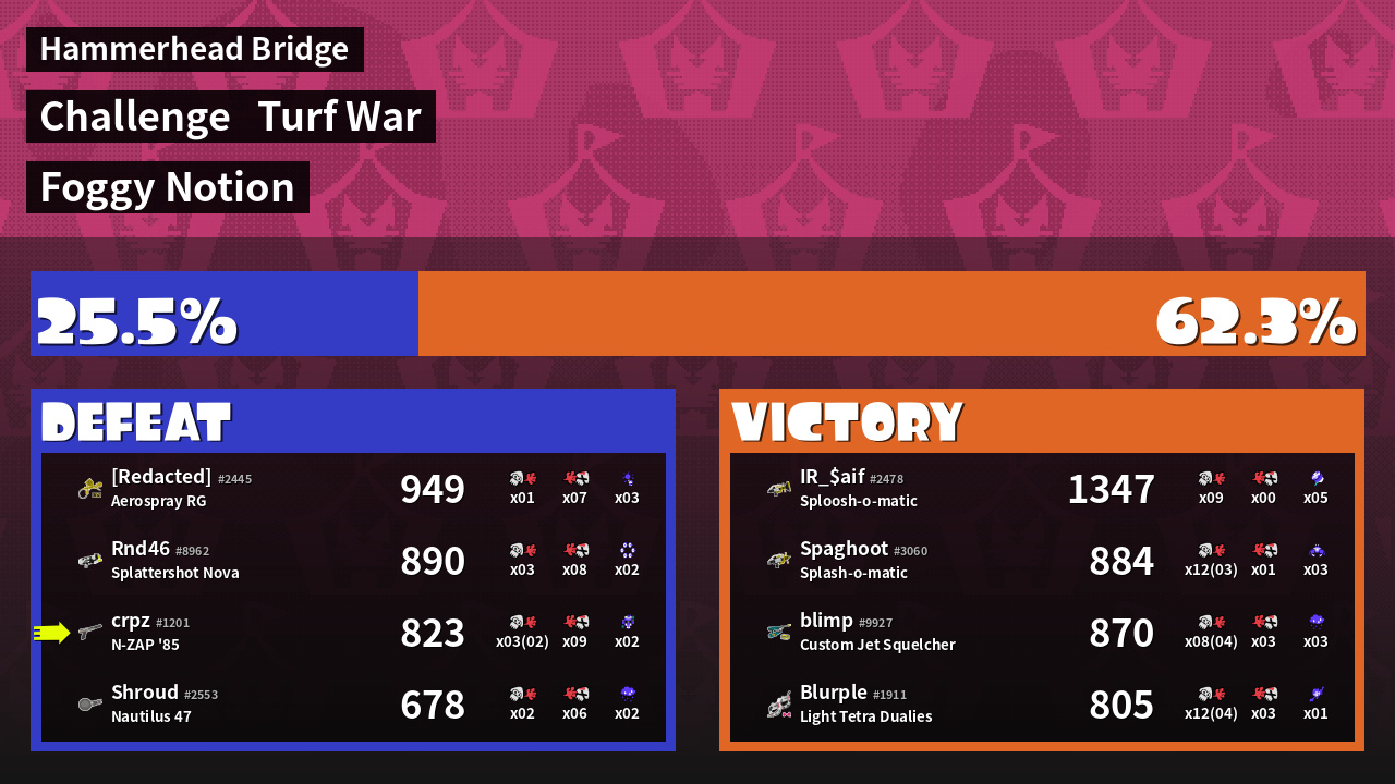 | Mode | Turf War - Challenge | ||