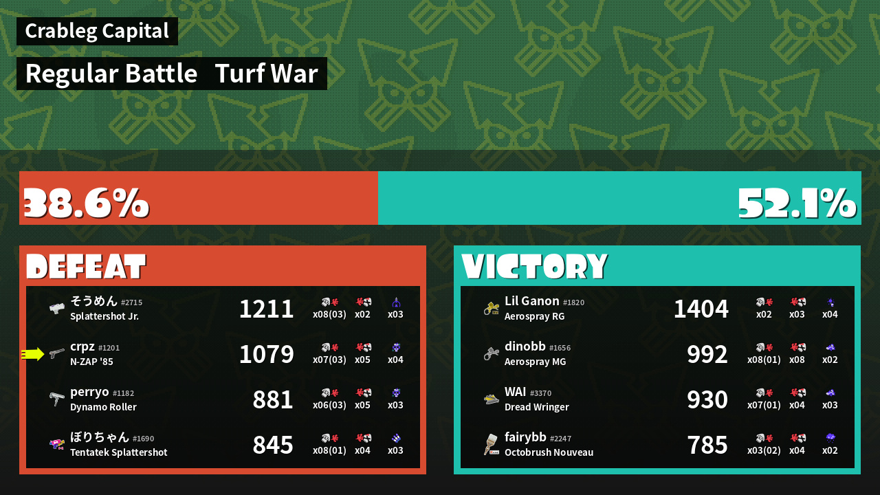| Medals | #1 Home-Base Inker #1 Splat Assister #1 Ground Traveler | ||