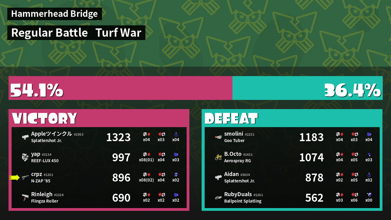 | Mode | Turf War - Regular Battle | ||