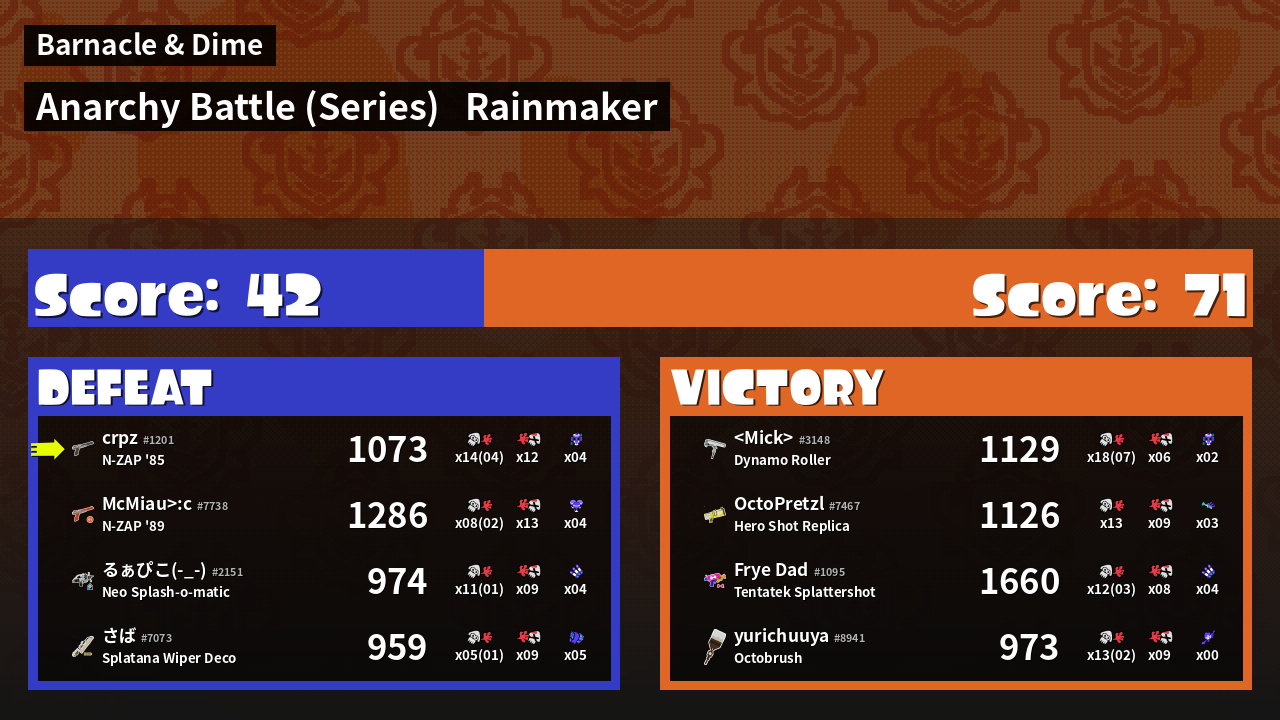 | Mode | Rainmaker - Anarchy Battle (Series) | ||