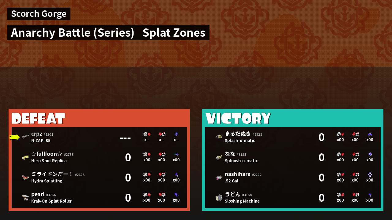 | Mode | Splat Zones - Anarchy Battle (Series) | ||