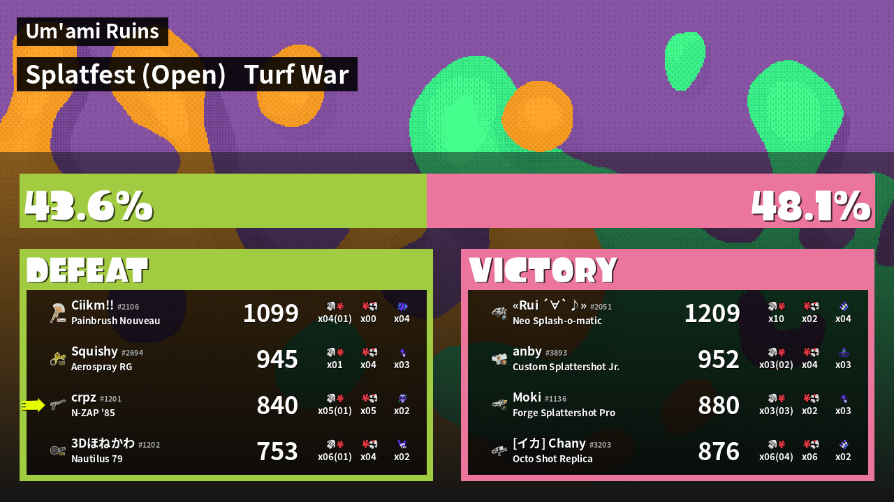 | Medals | #1 Popular Target #1 Enemy-Base Inker #1 Splat Assister | ||