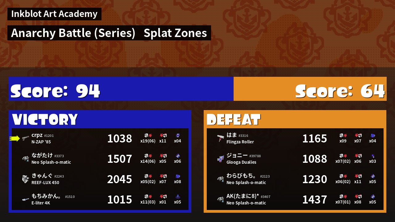 | Mode | Splat Zones - Anarchy Battle (Series) | ||