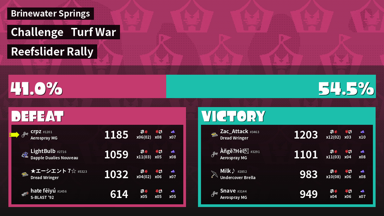 | Weapon | Aerospray MG ( Fizzy Bomb / Reefslider) | ||