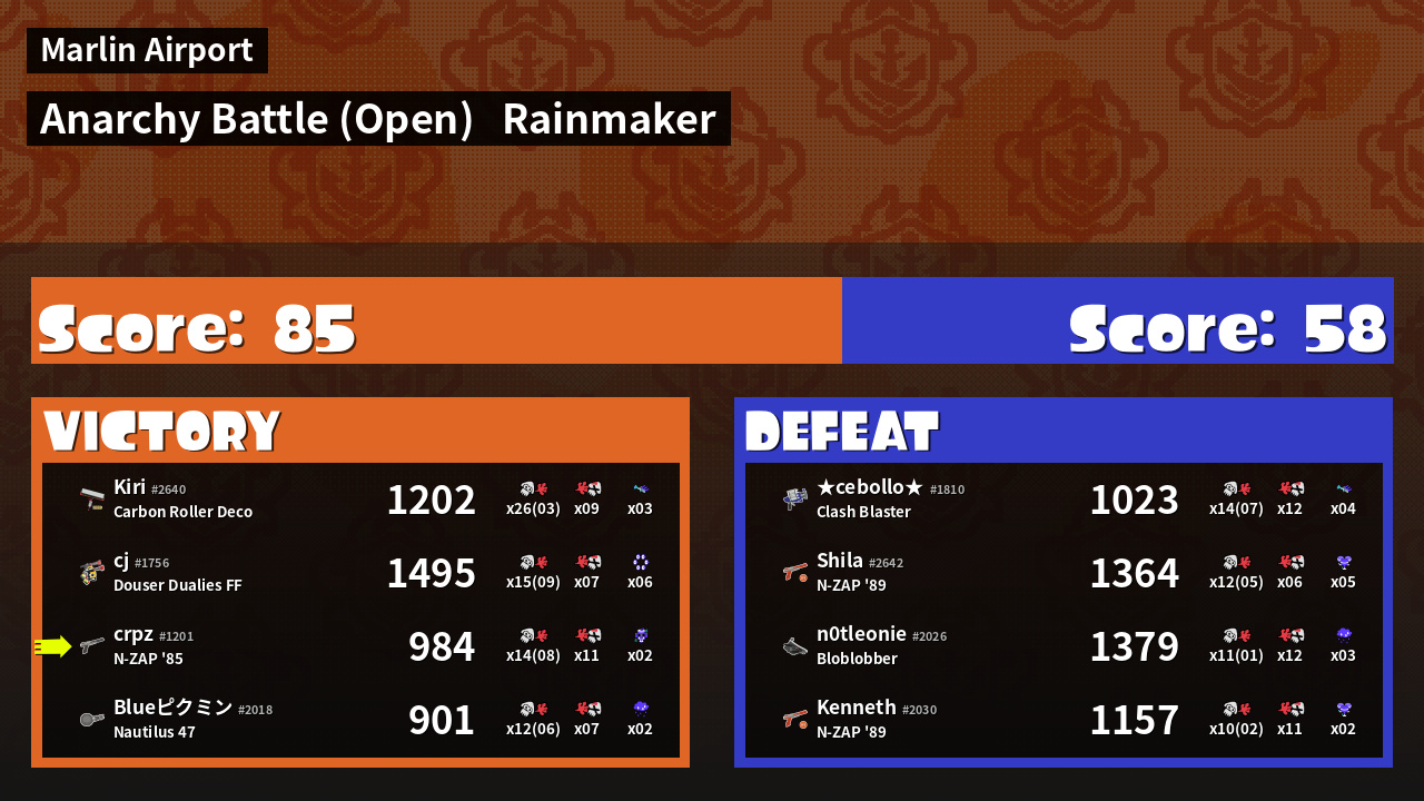 | Mode | Rainmaker - Anarchy Battle (Open) | ||