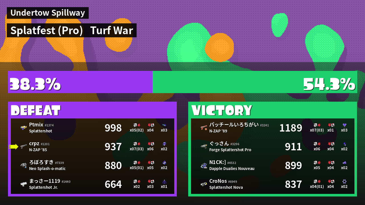 | Mode | Turf War - Splatfest (Pro) | ||