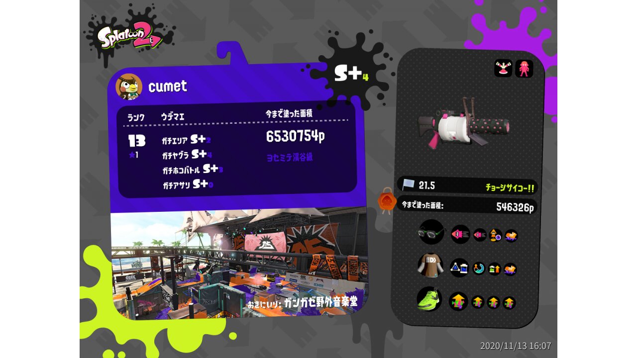 | Name | Weapon | Level | Rank | Inked | k+a/sp | k/d |
