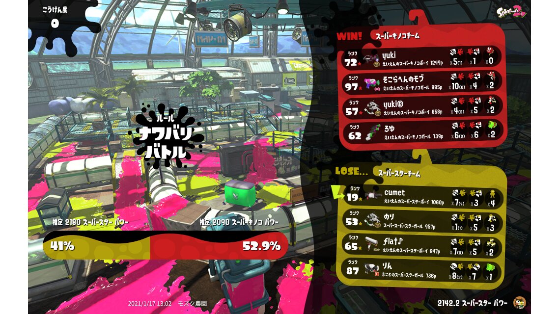 | My team's splatfest power | 2,180 | ||||||||||||||||||||||||||||||||||||||||