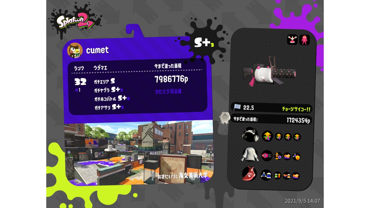| Name | Weapon | Level | Rank | Inked | k+a/sp | k/d |