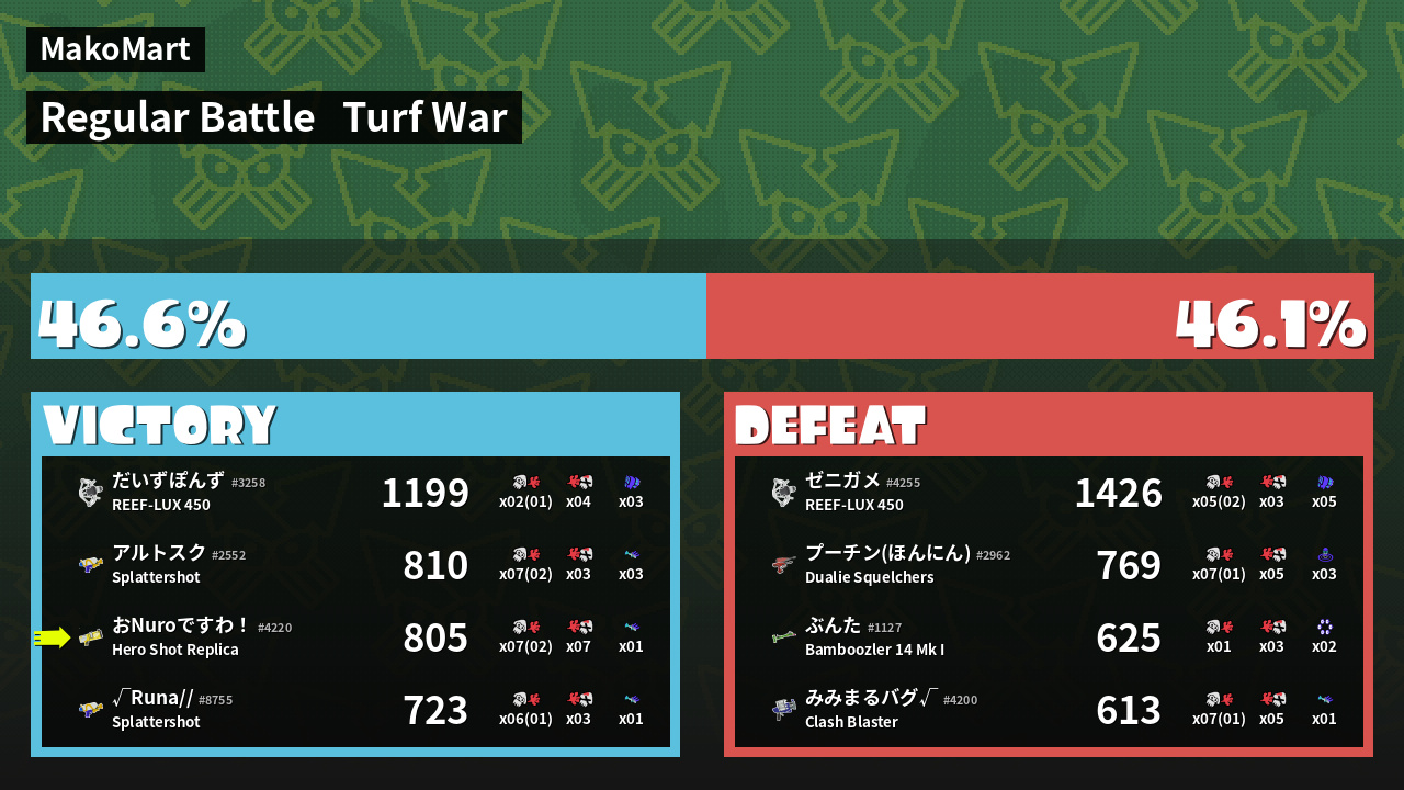 | Mode | Turf War - Regular Battle | ||