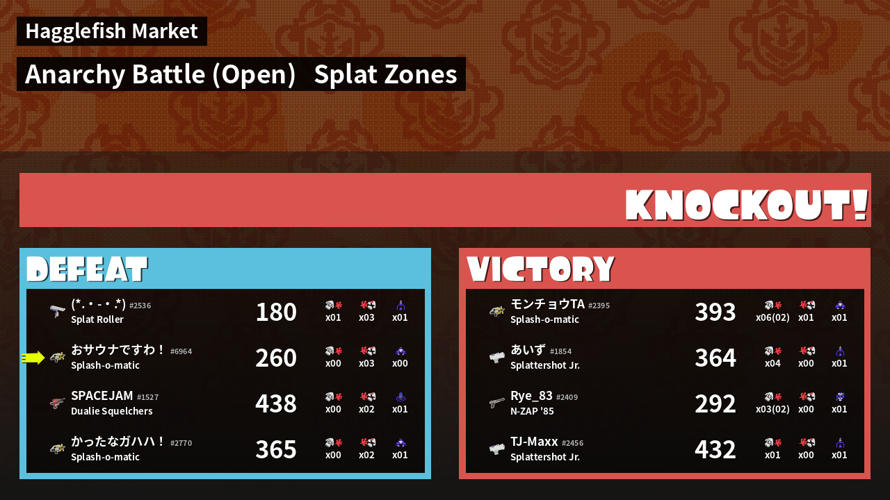 | Mode | Splat Zones - Anarchy Battle (Open) | ||