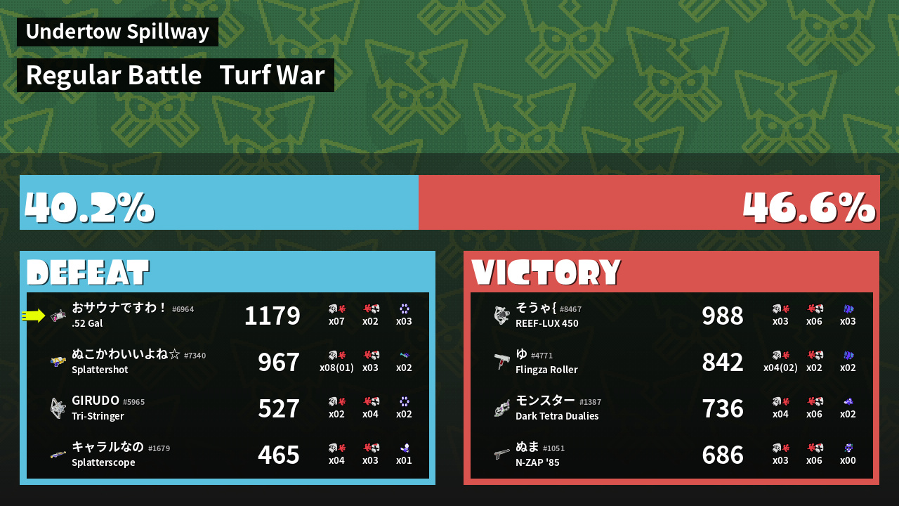 | Medals | #1 Turf Inker #1 Super Jump Spot #1 Enemy Splatter | ||