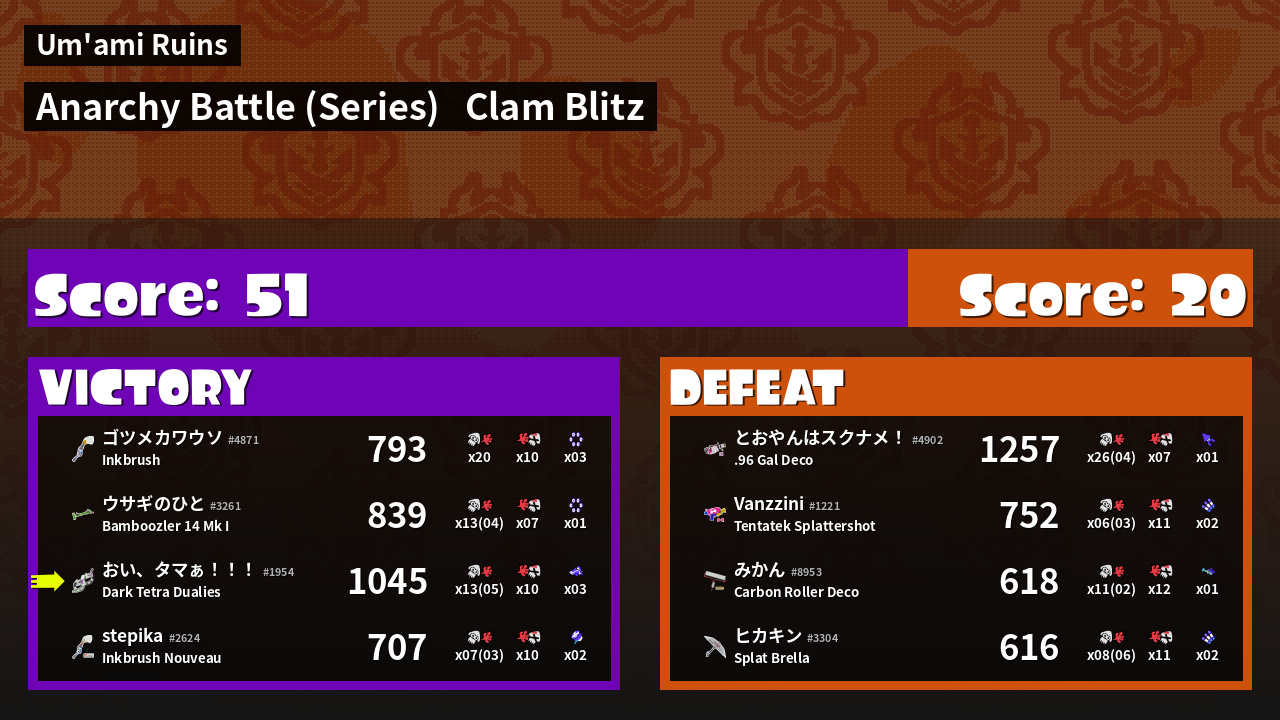 | Mode | Clam Blitz - Anarchy Battle (Series) | ||