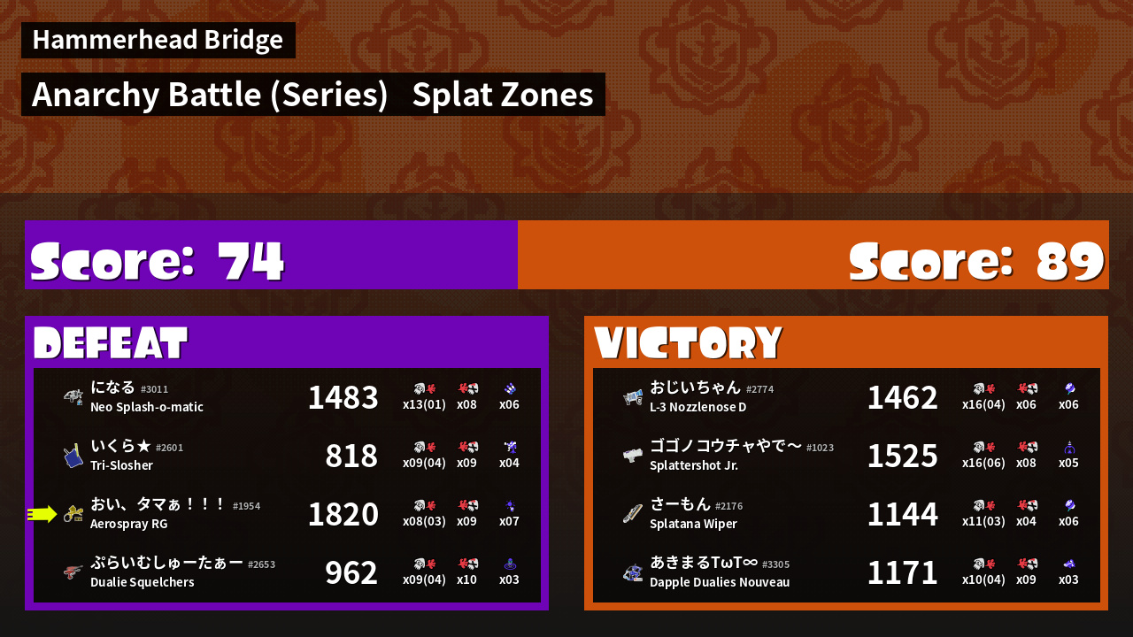 | Medals | #1 Splat Zone Inker #1 Turf Inker #1 Splat Zone Hero | ||