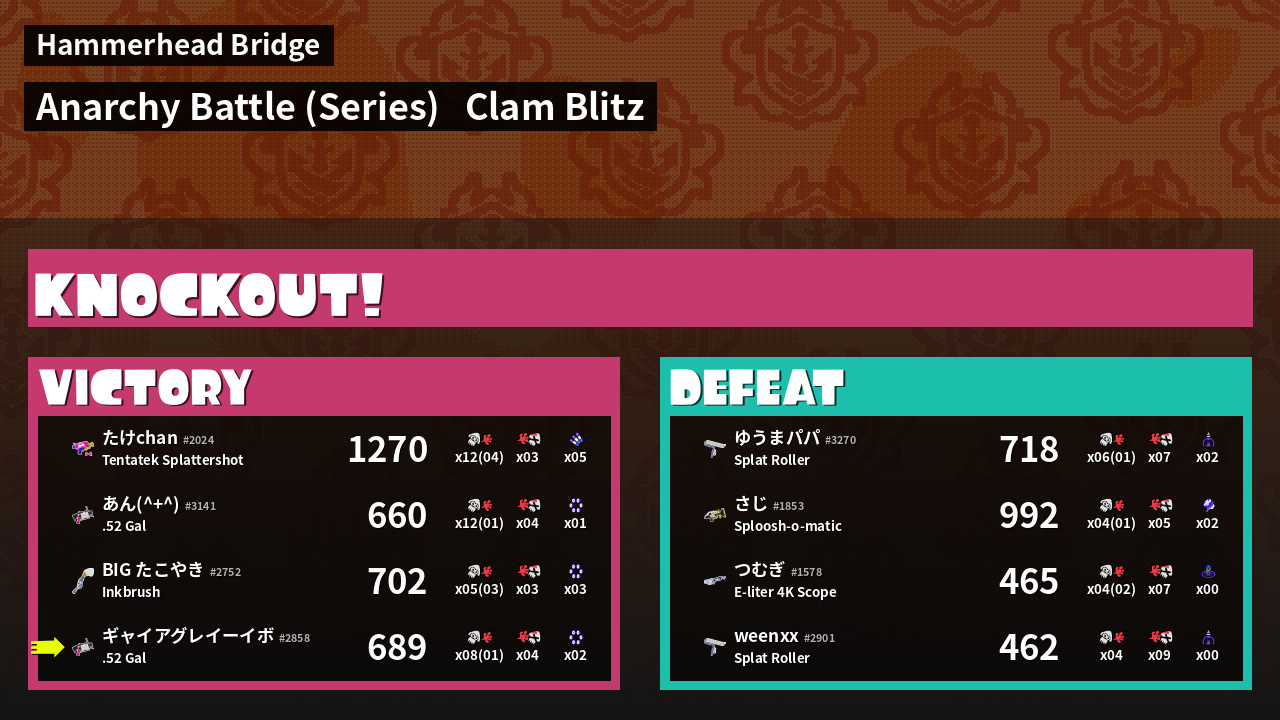 | Mode | Clam Blitz - Anarchy Battle (Series) | ||