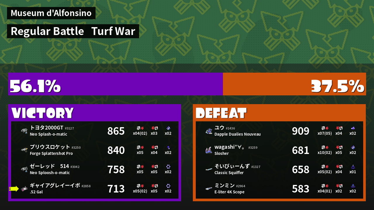 | Mode | Turf War - Regular Battle | ||