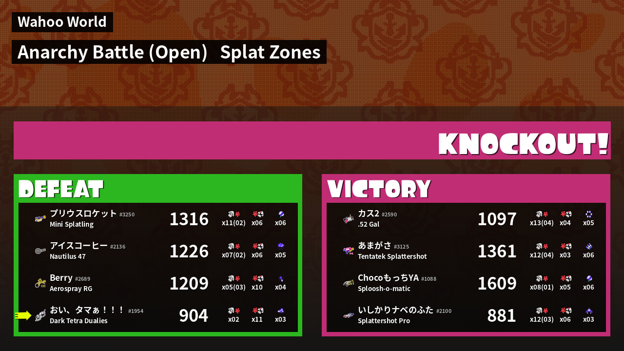 | Mode | Splat Zones - Anarchy Battle (Open) | ||