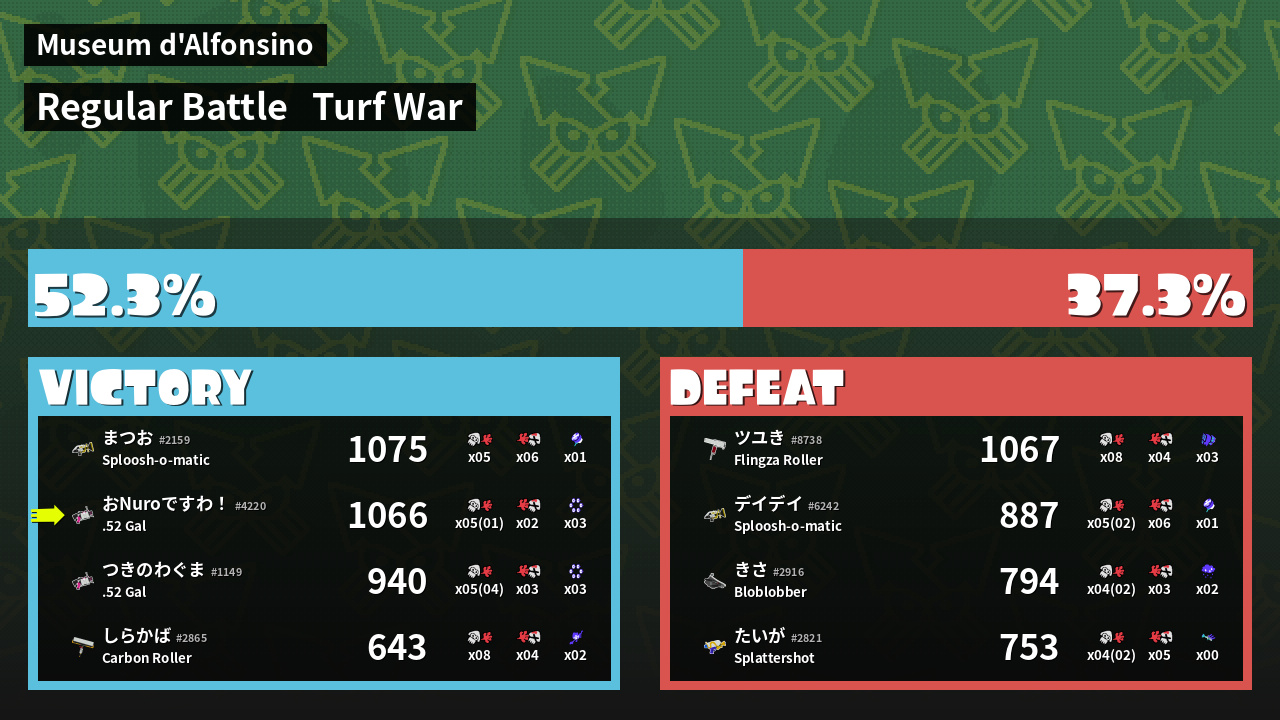 | Mode | Turf War - Regular Battle | ||