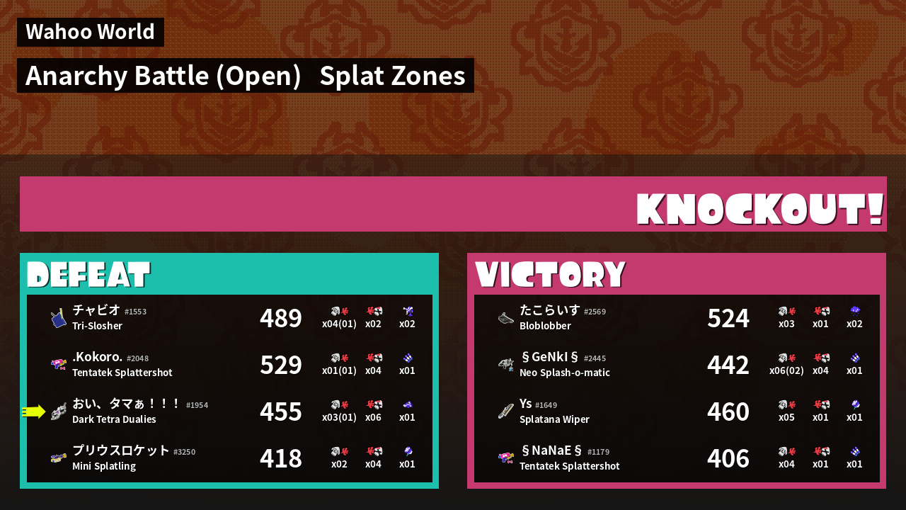 | Mode | Splat Zones - Anarchy Battle (Open) | ||