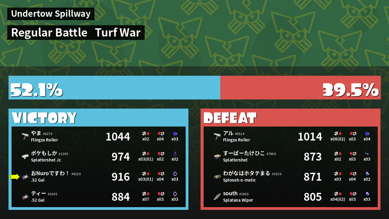 | Medals | #1 Splat Assister #1 Damage Taker #1 Killer Wail 5.1 User | ||