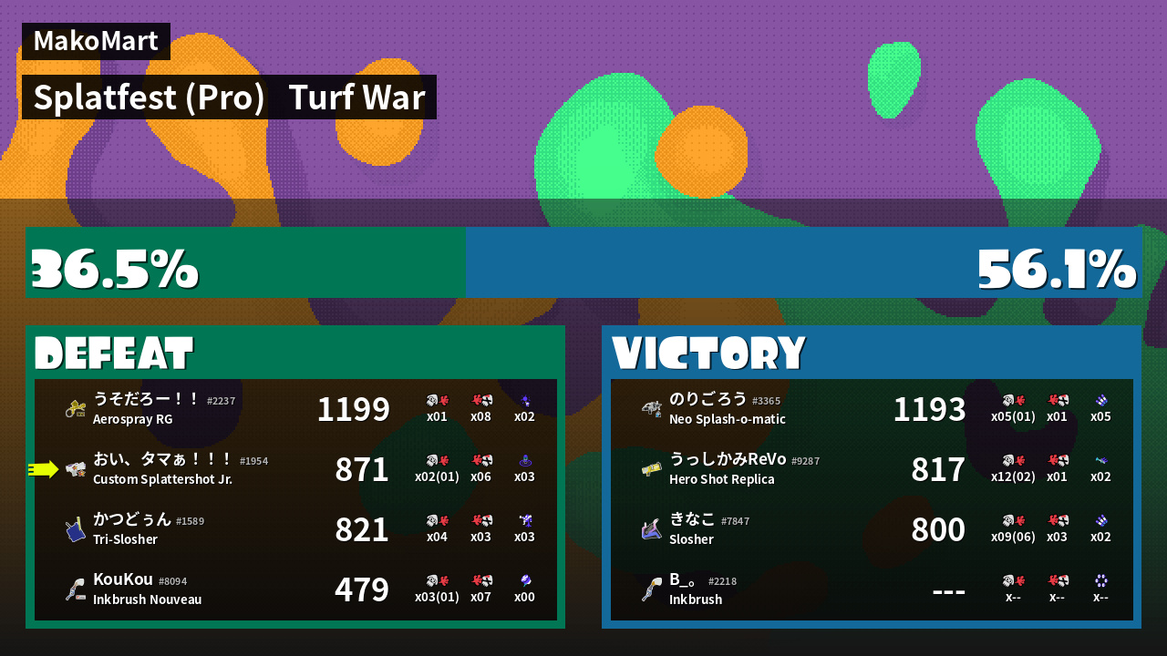 | Mode | Turf War - Splatfest (Pro) | ||