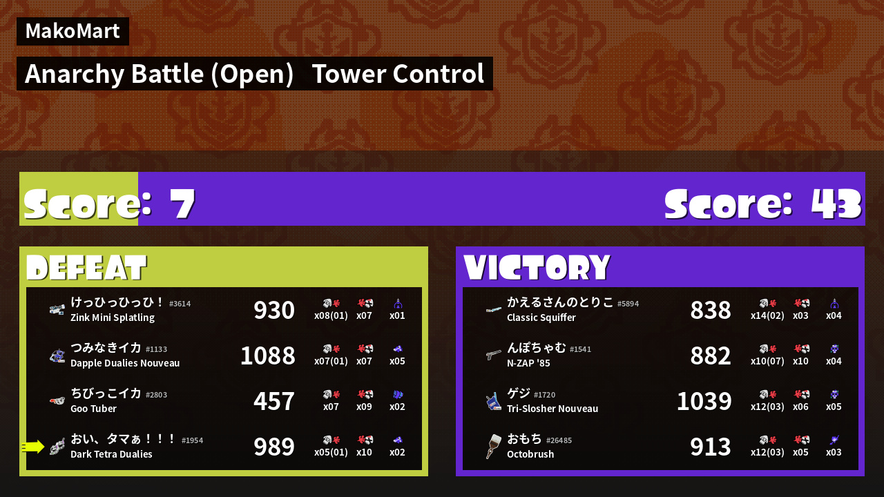 | Mode | Tower Control - Anarchy Battle (Open) | ||