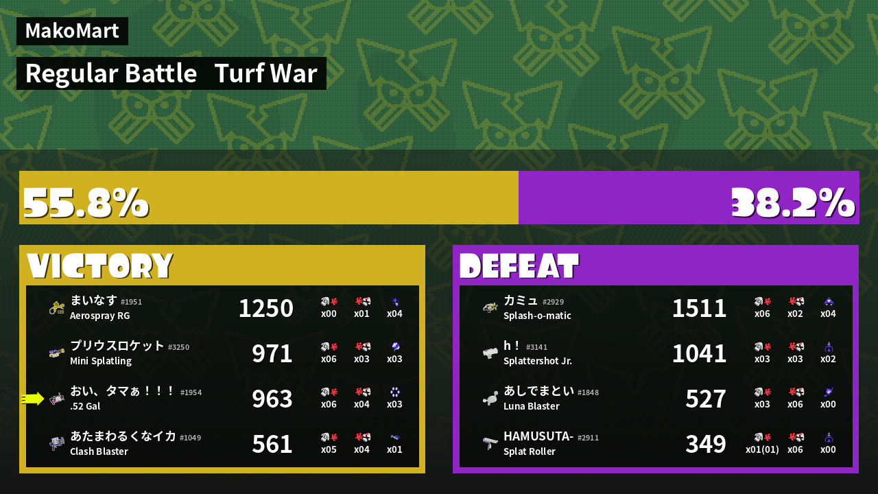 | Mode | Turf War - Regular Battle | ||