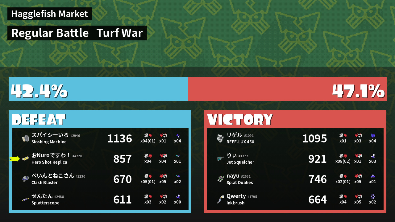 | Medals | #1 Enemy Splatter First Splat! #1 Trizooka User | ||
