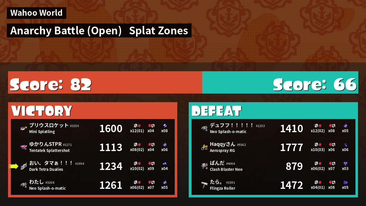 | Mode | Splat Zones - Anarchy Battle (Open) | ||