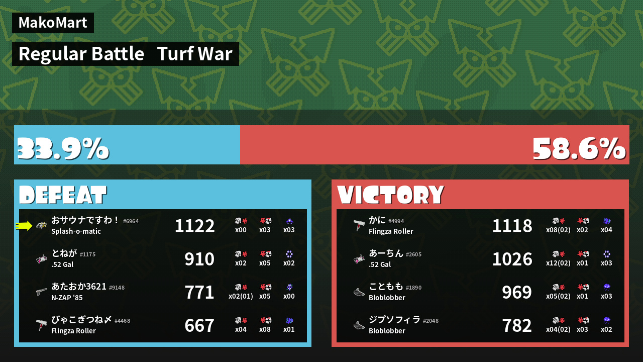 | Mode | Turf War - Regular Battle | ||