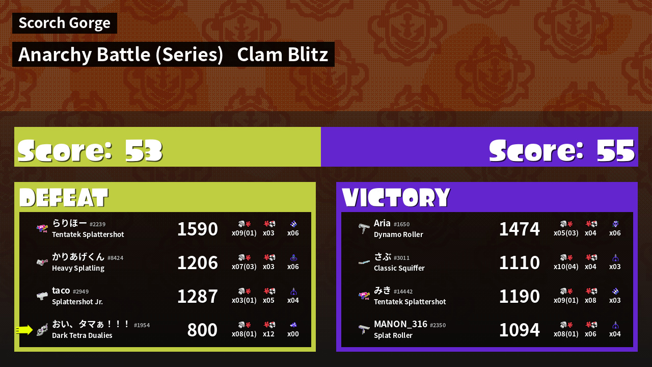 | Mode | Clam Blitz - Anarchy Battle (Series) | ||