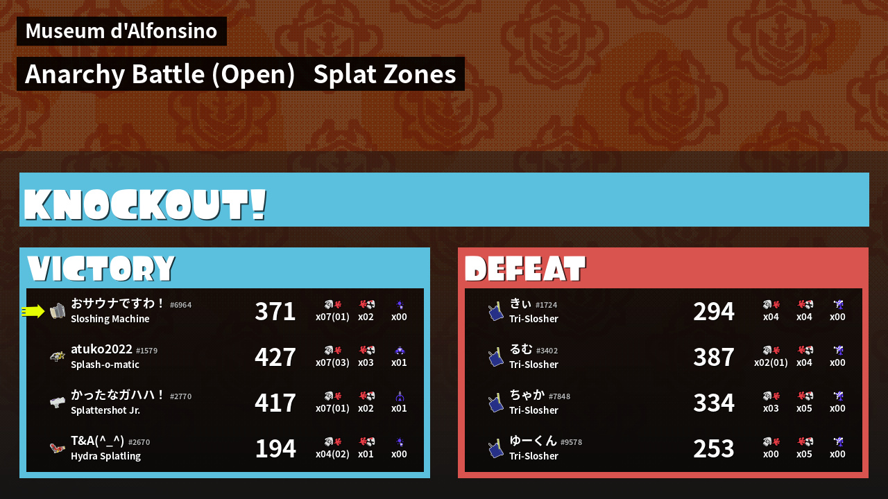 | Mode | Splat Zones - Anarchy Battle (Open) | ||