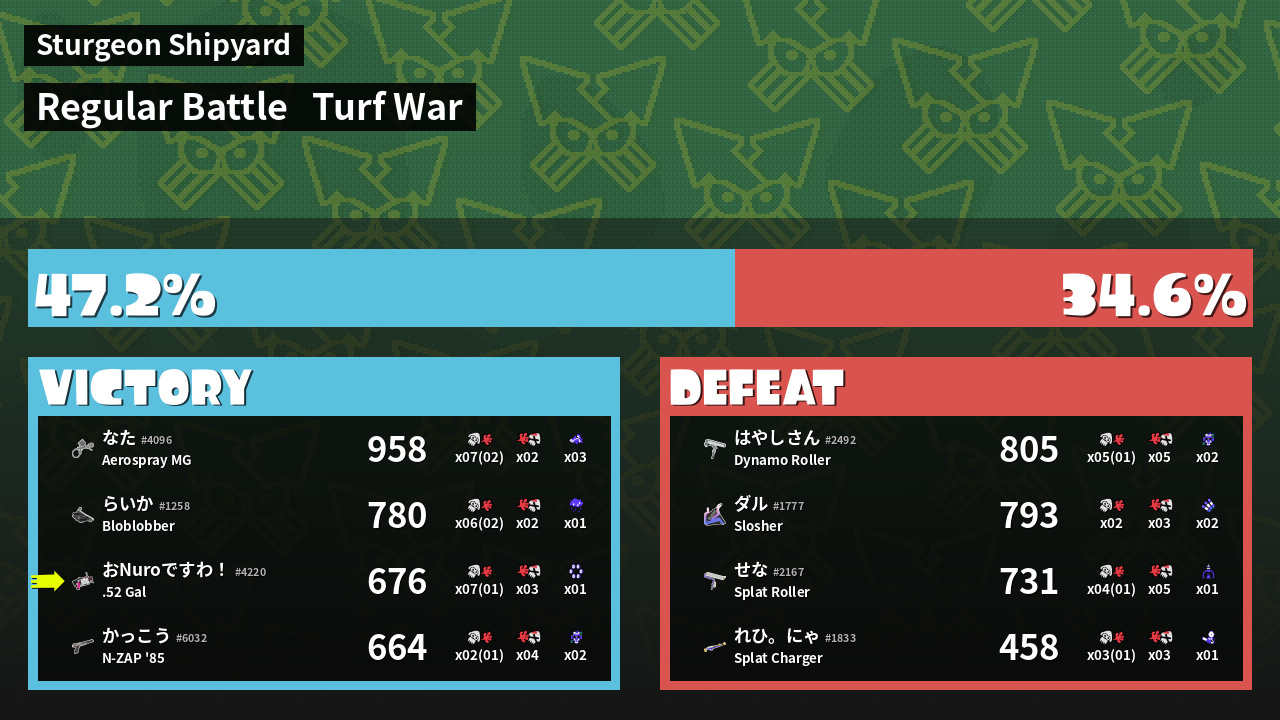 | Medals | #1 Overall Splatter #1 Enemy Splatter #1 Killer Wail 5.1 User | ||