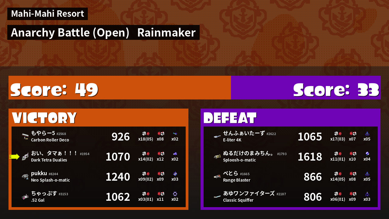 | Mode | Rainmaker - Anarchy Battle (Open) | ||