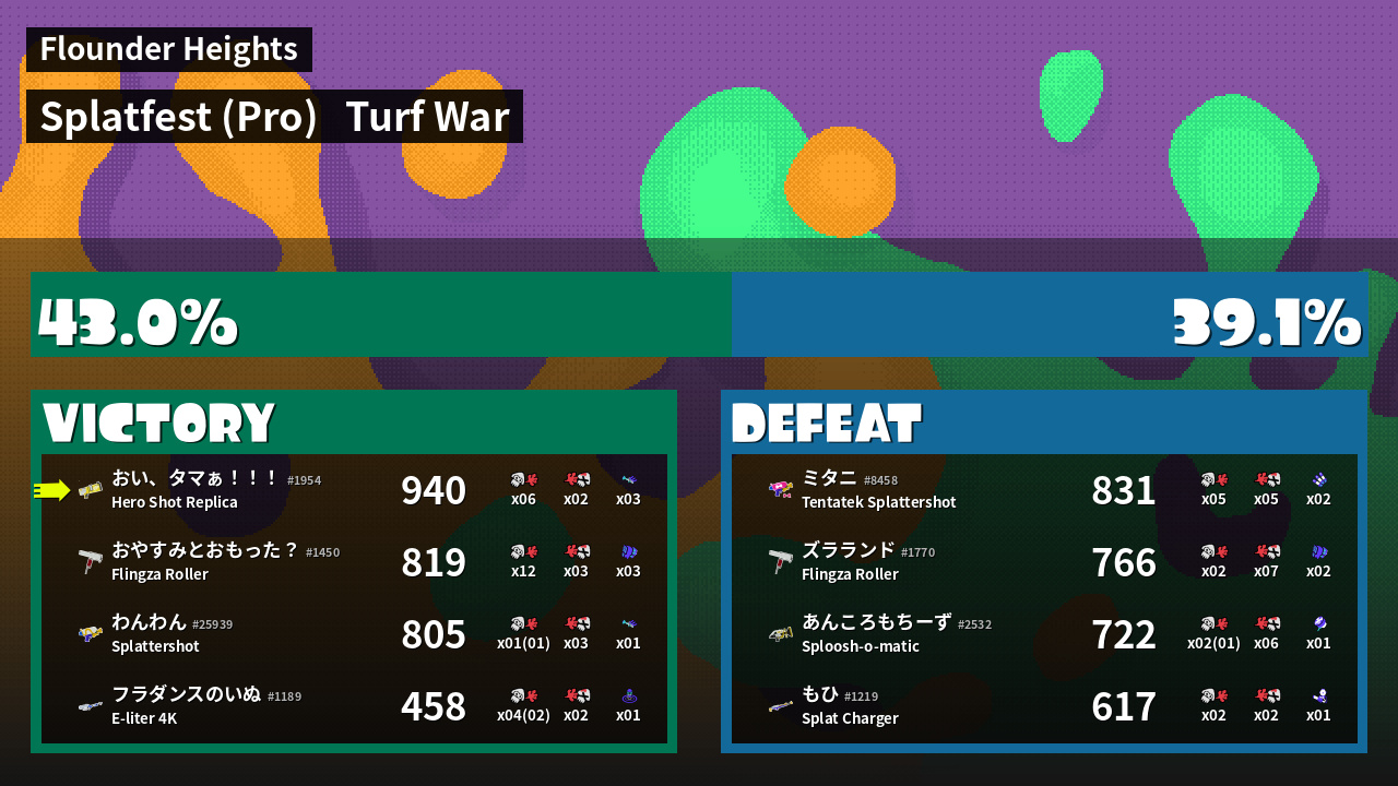 | Mode | Turf War - Splatfest (Pro) | ||