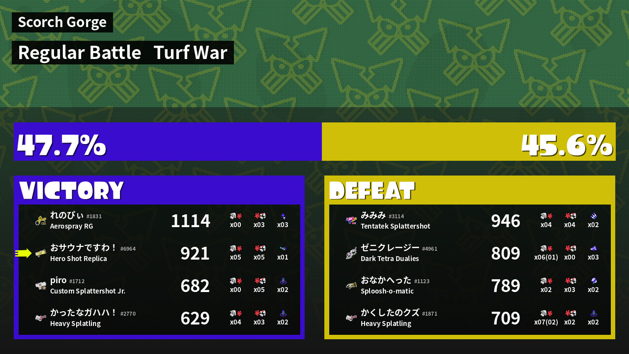 | Mode | Turf War - Regular Battle | ||