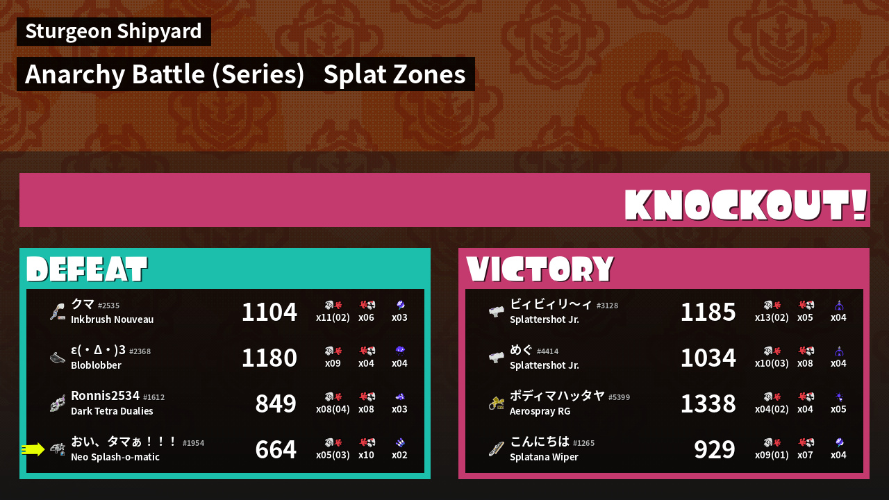 | Mode | Splat Zones - Anarchy Battle (Series) | ||