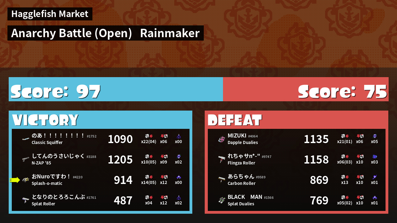 | Mode | Rainmaker - Anarchy Battle (Open) | ||