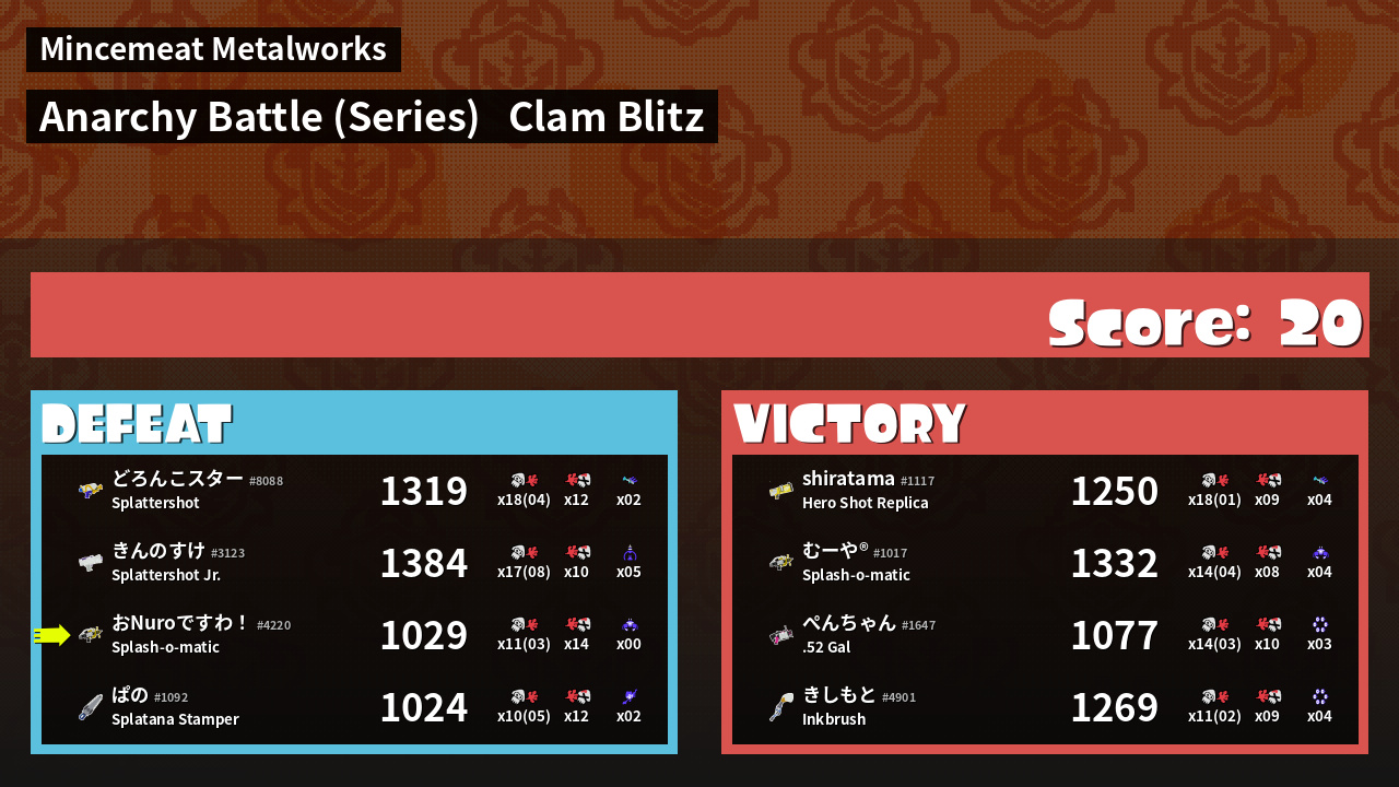 | Mode | Clam Blitz - Anarchy Battle (Series) | ||