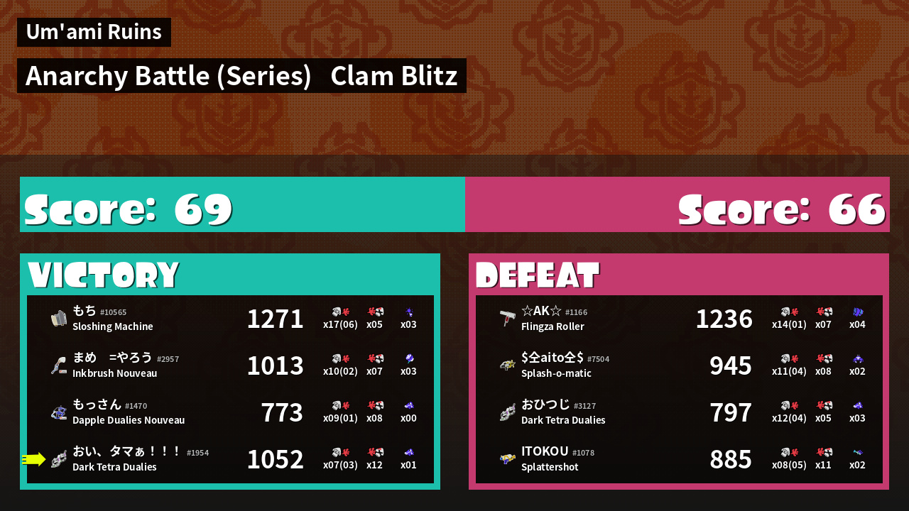 | Mode | Clam Blitz - Anarchy Battle (Series) | ||