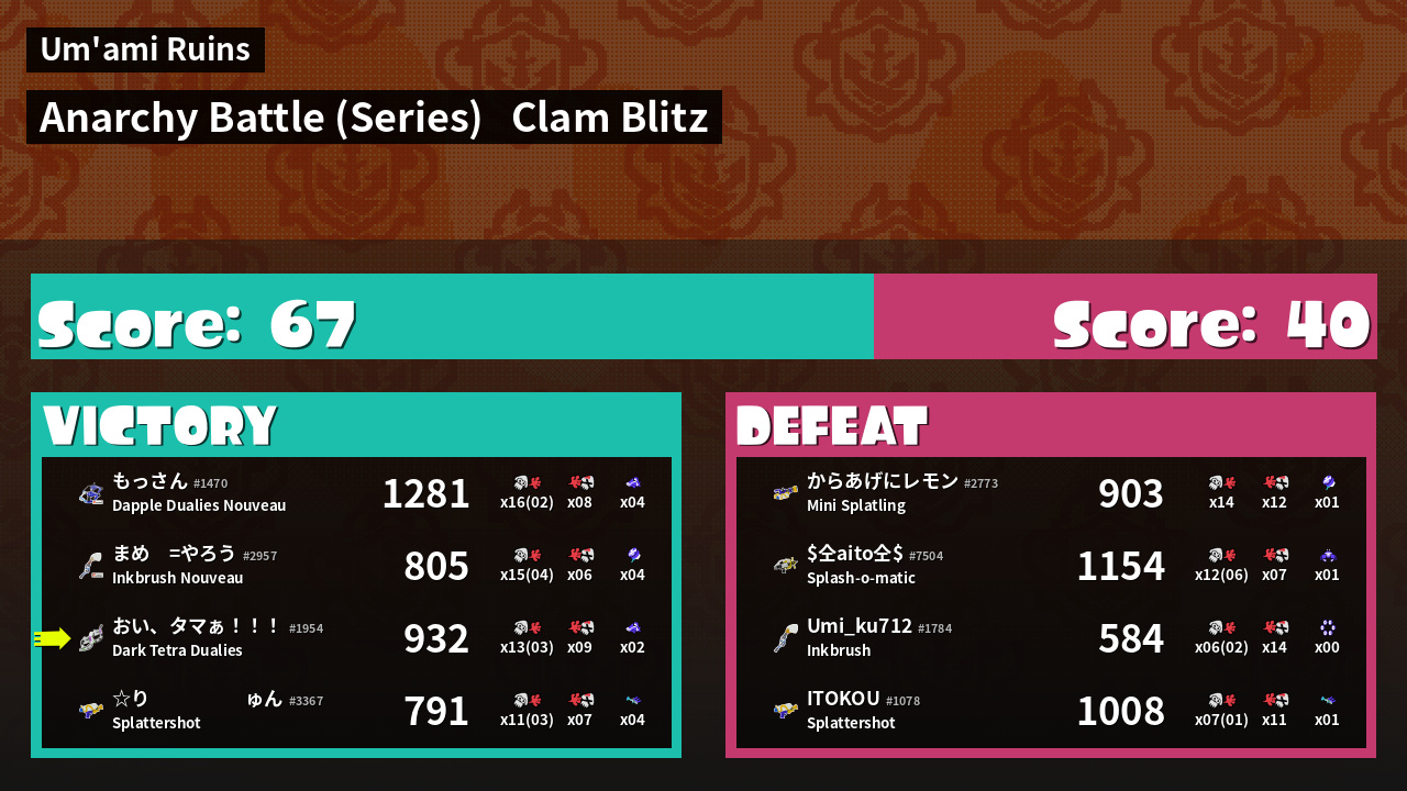| Mode | Clam Blitz - Anarchy Battle (Series) | ||