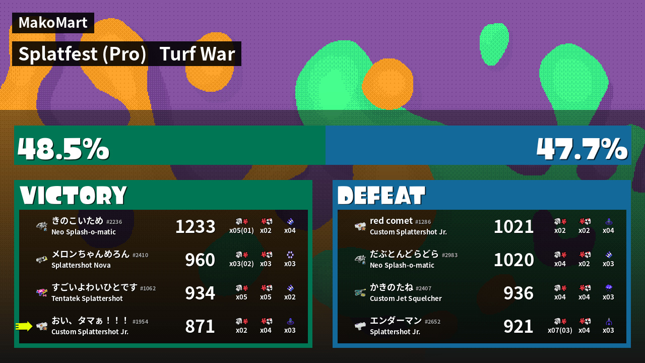 | Mode | Turf War - Splatfest (Pro) | ||
