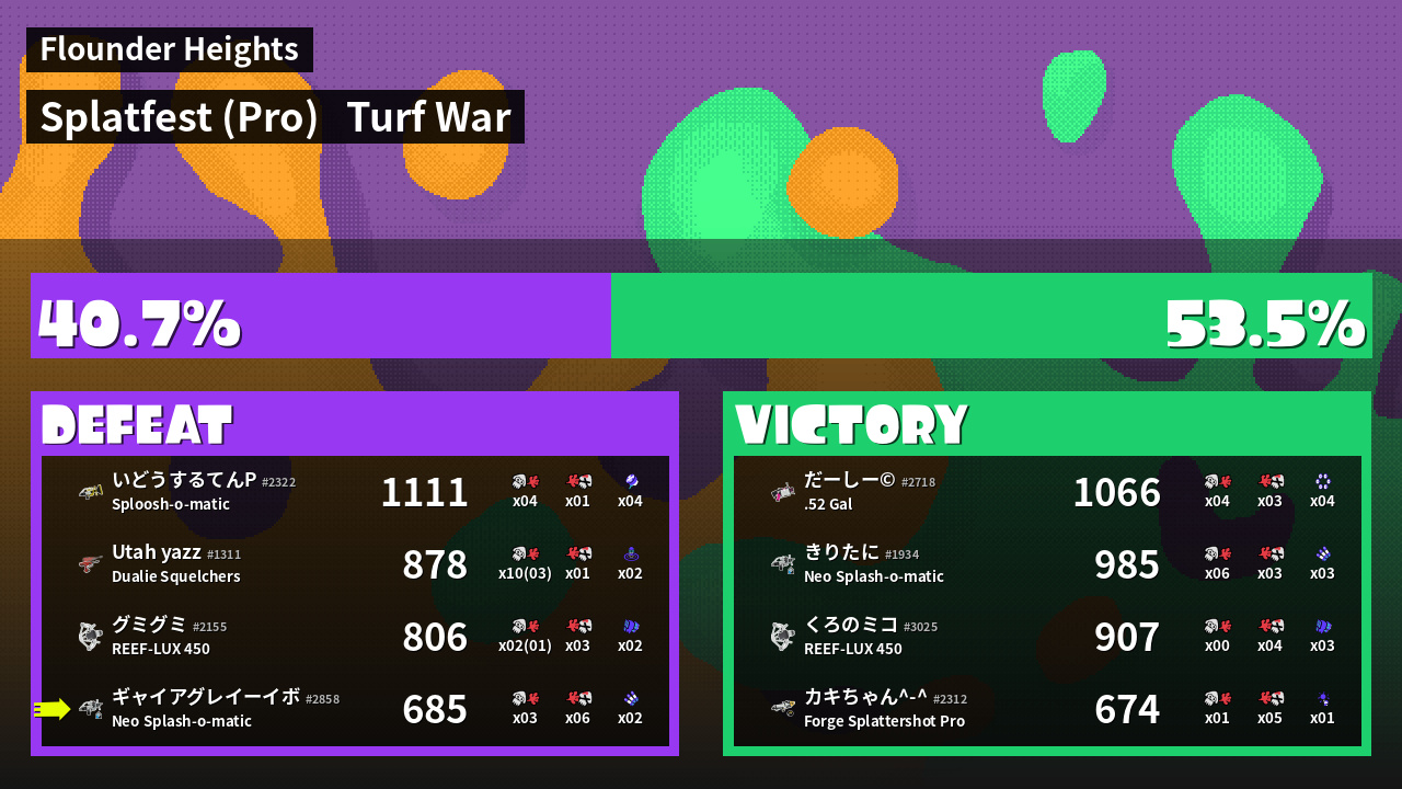 | Mode | Turf War - Splatfest (Pro) | ||
