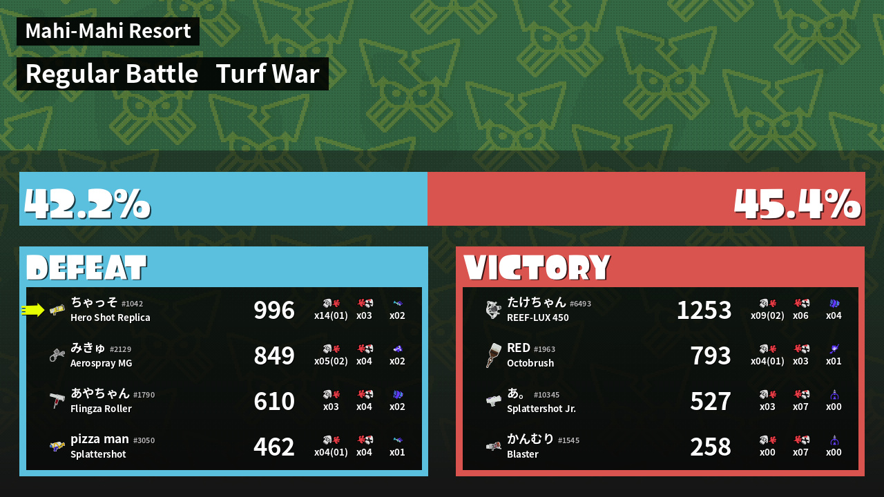 | Mode | Turf War - Regular Battle | ||