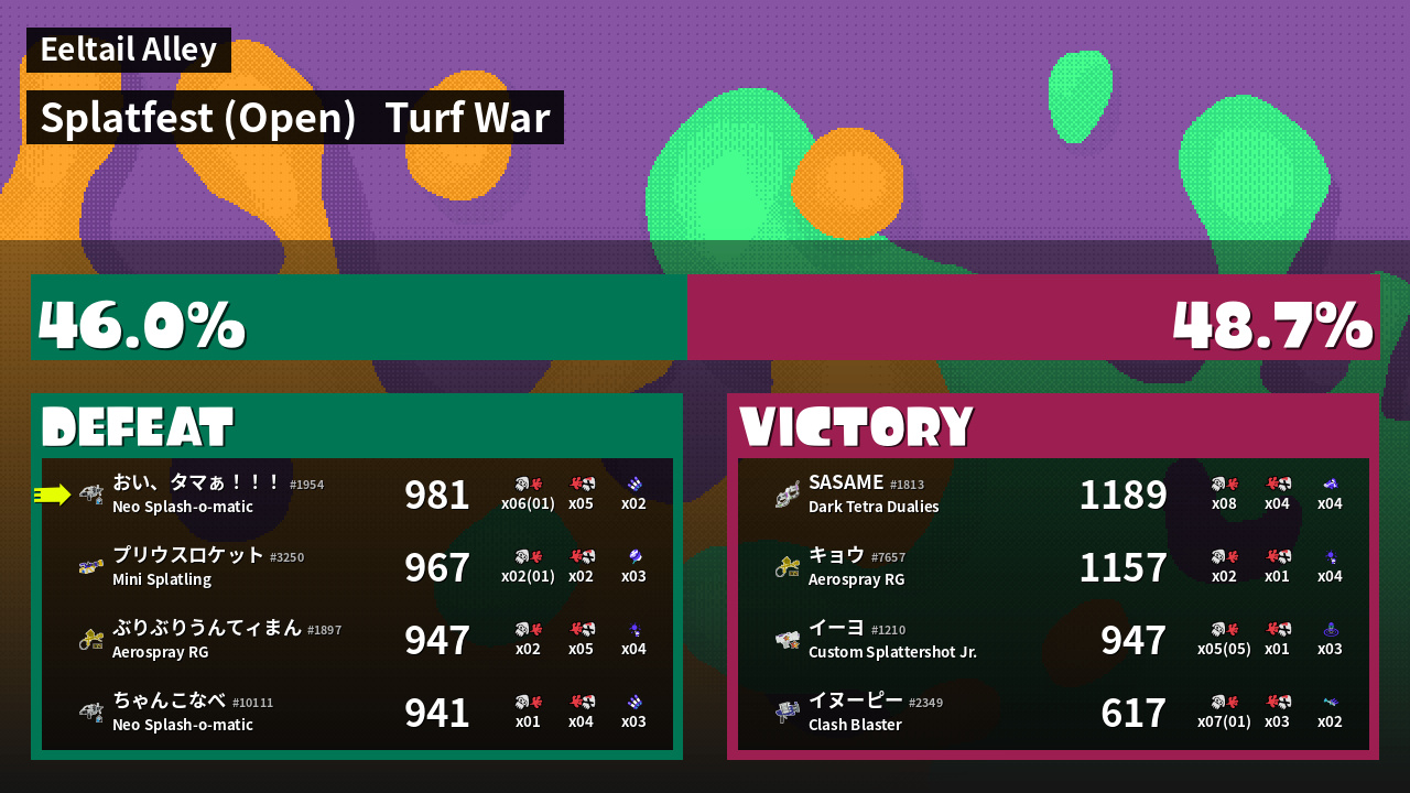 | Medals | #1 Overall Splatter #1 Turf Inker #1 Enemy Splatter | ||