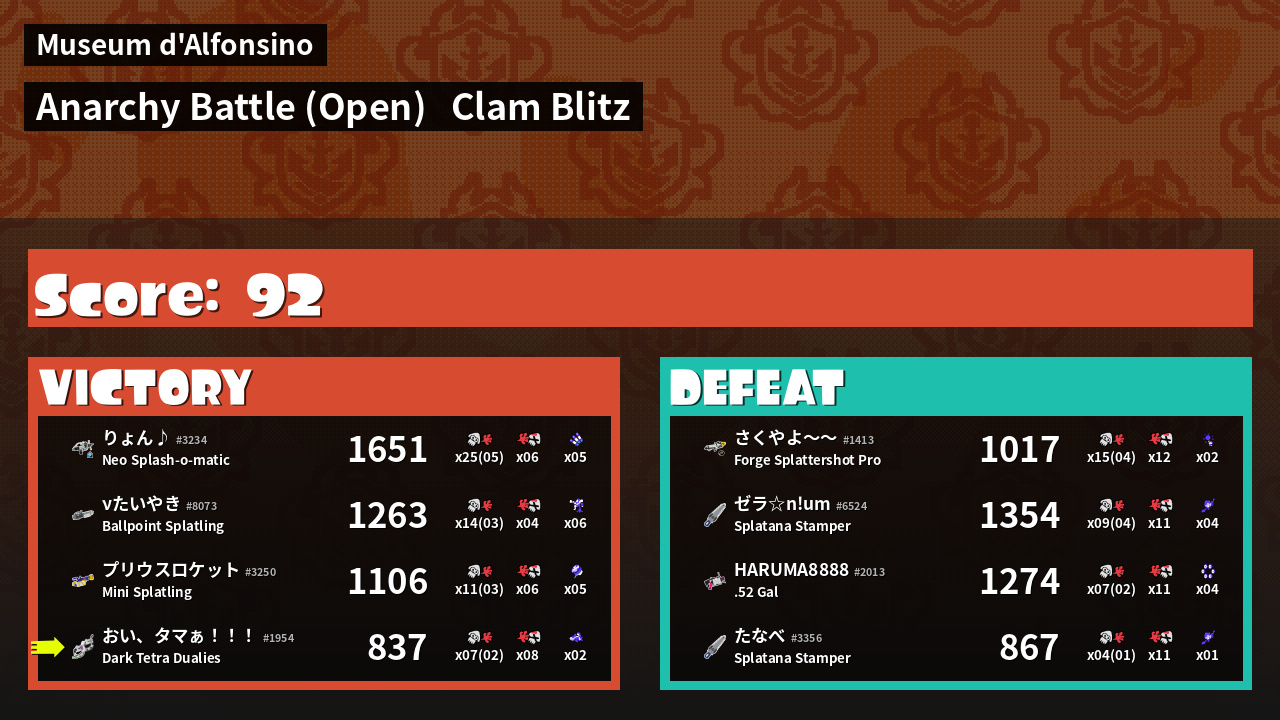 | Mode | Clam Blitz - Anarchy Battle (Open) | ||