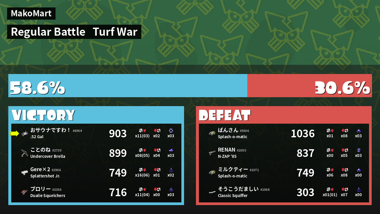 | Mode | Turf War - Regular Battle | ||