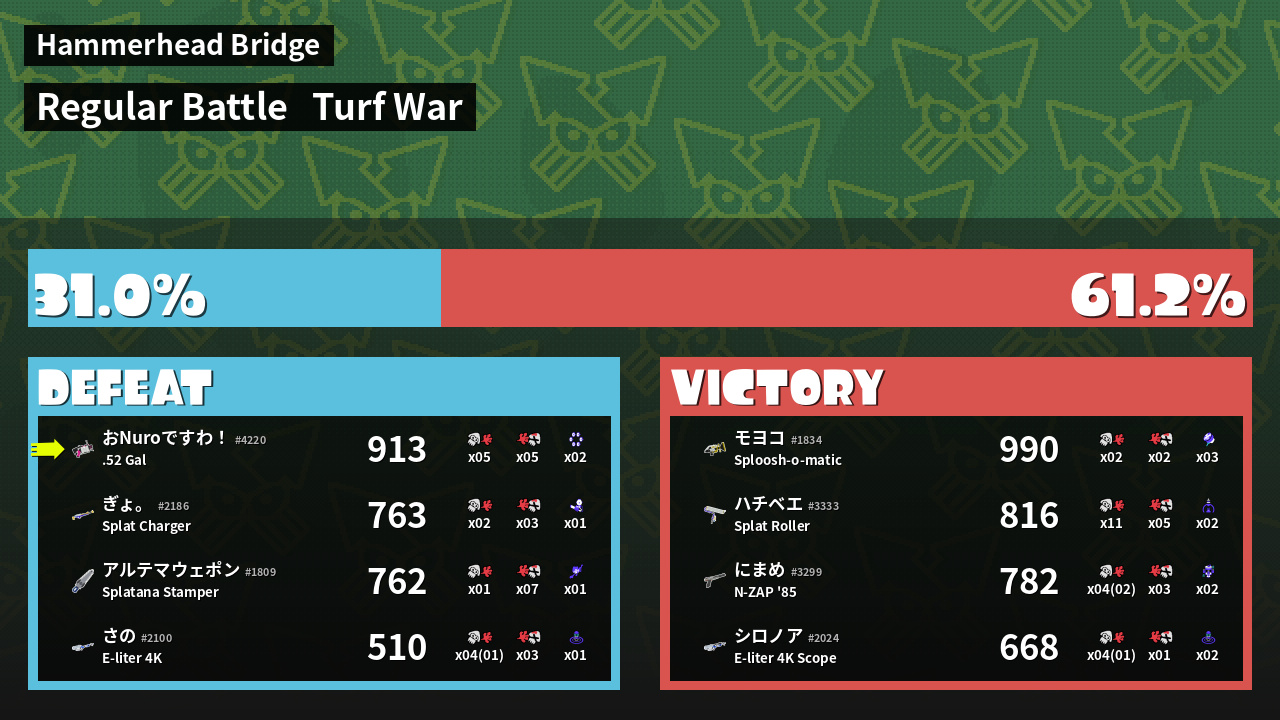 | Mode | Turf War - Regular Battle | ||