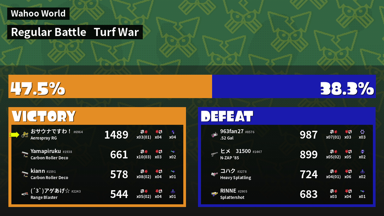 | Mode | Turf War - Regular Battle | ||